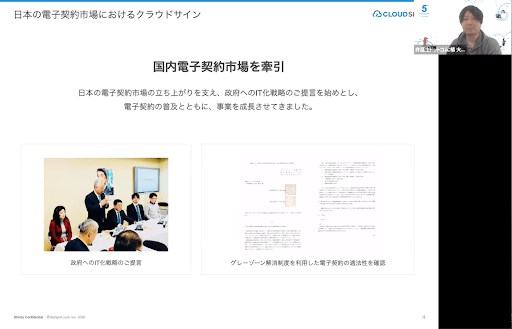 クラウドサインで紙とハンコの契約手続きが不要になり押印のための出社が不要になったとか、紙じゃないから営業が出先で契約書を紛失するリスクが無くなったとか。業務プロセス自体の改善にも寄与できるんです。