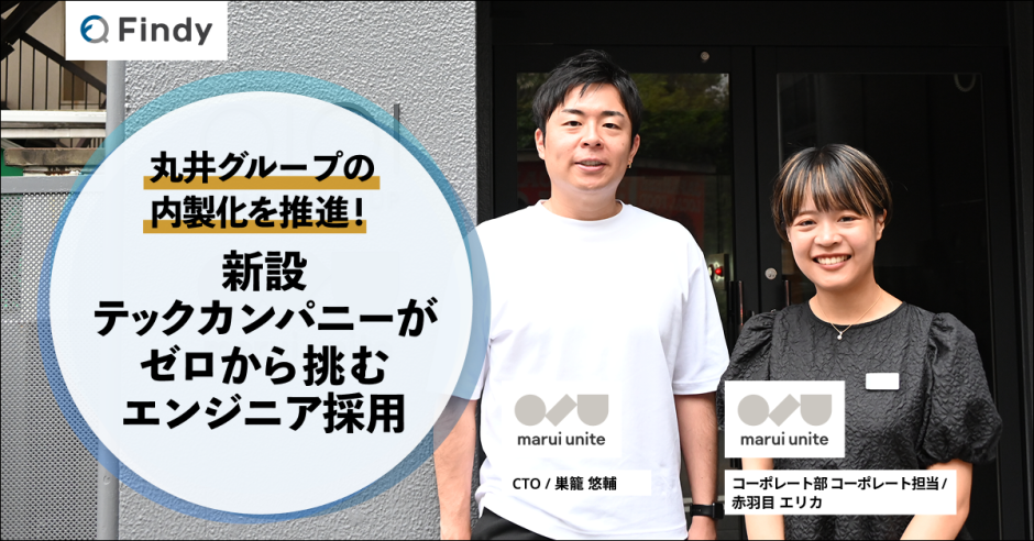 丸井グループのテックカンパニーとして、内製化を進める役割を担っている株式会社マルイユナイトでは、エンジニア採用においてスカウトサービス「Findy」をご活用いただいています。今回は、同社のCTOを務める巣籠様と、採用人事を担う赤羽目様に、会社設立の経緯やFindyを導入して感じたメリットなどについて、お話を伺いました。